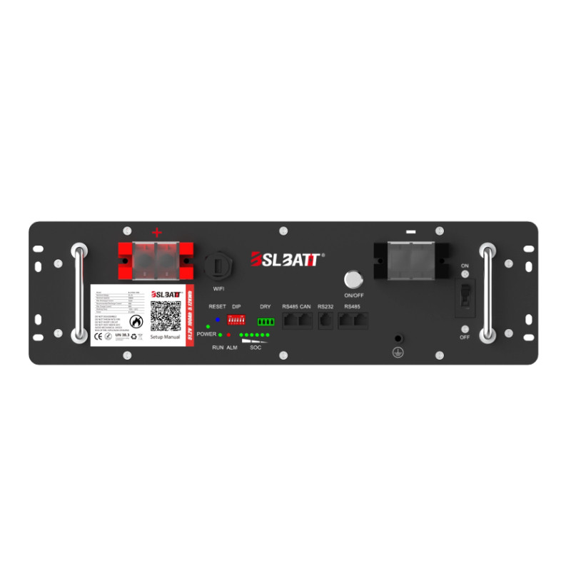 SLBATT 51.2V 100Ah to wysokiej jakości modułowy akumulator LiFePO4 o pojemności energetycznej 5,12 kWh, stworzony z myślą o magazynach energii domowych, komercyjnych oraz systemach zasilania awaryjnego i UPS. Dzięki 10-letniej gwarancji producenta oraz zaawansowanemu BMS stanowi jedną z najbardziej niezawodnych i przyszłościowych opcji na rynku.