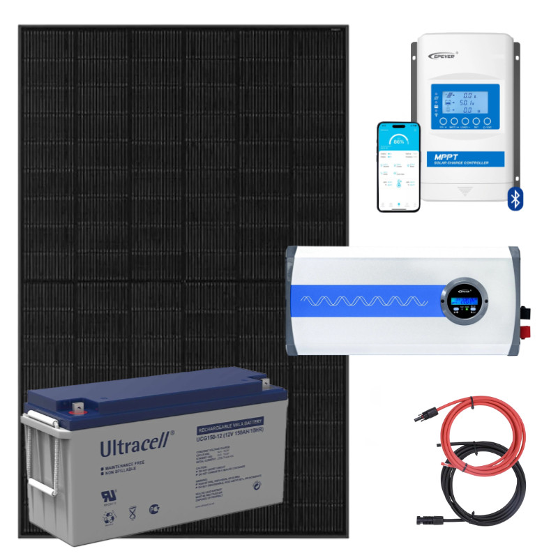 Elektrownia słoneczna 435Wp z akumulatorem – zasilanie 230V moc 1000W + MPPT to idealne rozwiązanie do zasilania urządzeń o niskim i średnim poborze energii. Zestaw składa się z panelu słonecznego, akumulatora żelowego o pojemności 150Ah oraz przetwornicy przekształcającej napięcie 12V DC na 220/230V AC. Doskonale sprawdza się w domowych zastosowaniach, zasilając m.in. oświetlenie LED, telewizory, radia, laptopy, a nawet mniejsze lodówki i pompy o mocy do 900W.