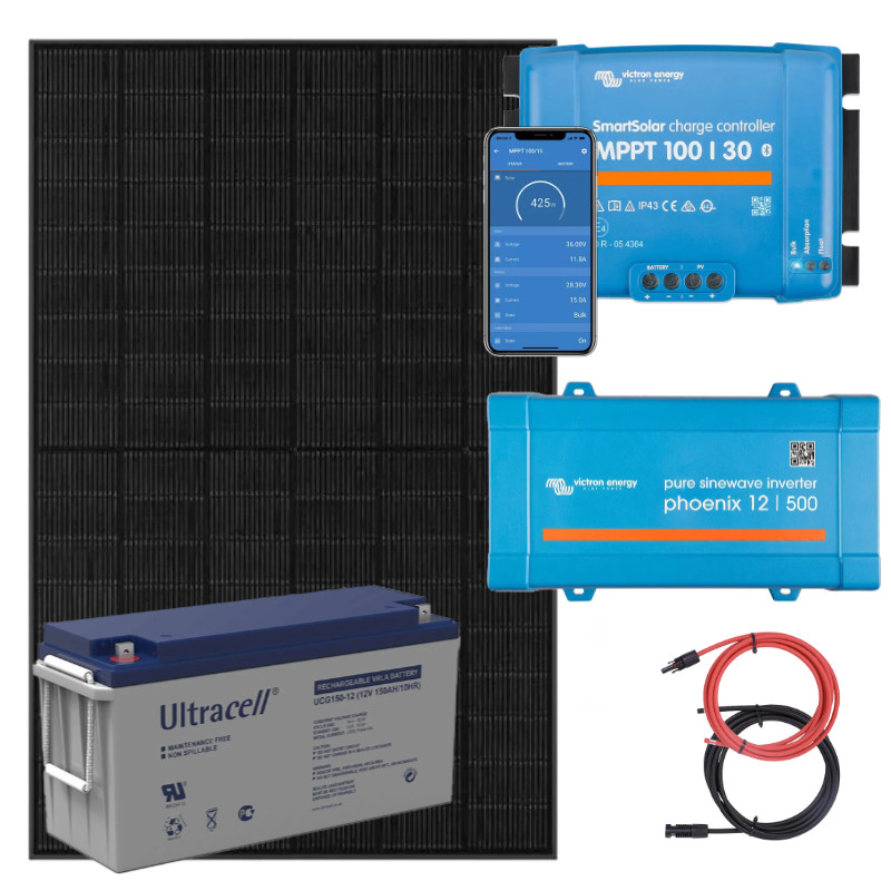 Elektrownia słoneczna 435Wp z akumulatorem – zasilanie 230V moc 400W + MPPT
