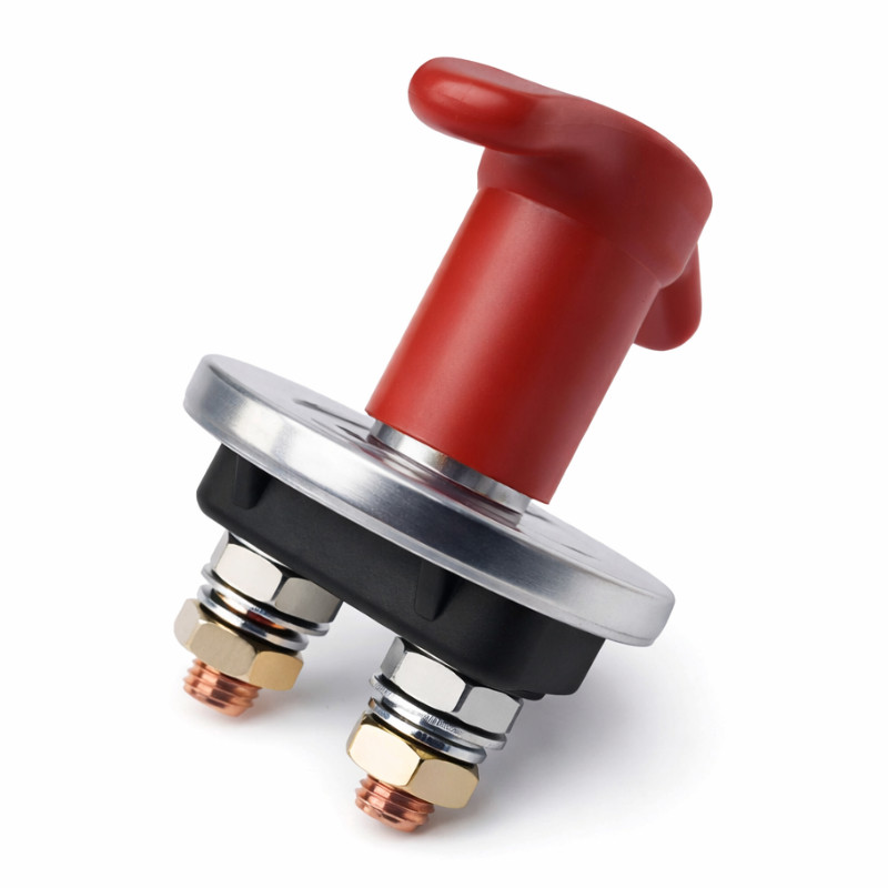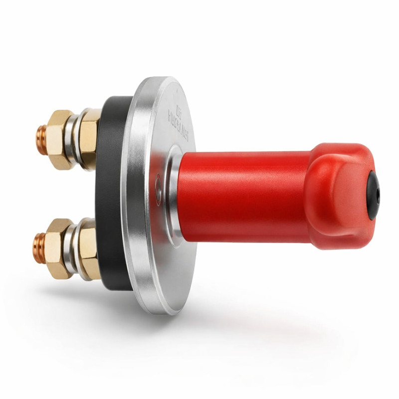Wytrzymały rozłącznik główny do instalacji 12/24 V DC, przystosowany do pracy ciągłej z prądem do 250 A. Zapewnia szybkie i bezpieczne odcięcie zasilania w pojazdach, łodziach, kamperach oraz systemach off-grid, zwiększając bezpieczeństwo całej instalacji. Zaprojektowany do niskonapięciowych systemów zasilania w motoryzacji, zastosowaniach morskich oraz autonomicznych układach fotowoltaicznych, gdzie wymagana jest niezawodna separacja akumulatora. Może pełnić rolę głównego wyłącznika serwisowego lub elementu bezpieczeństwa w skrzynkach i szafach zasilających (np. Szafa FF01-6615-12BL V2 z termostatem), instalacjach PV off-grid, kamperach, łodziach oraz innych systemach, w których wymagane jest szybkie i pewne odłączenie akumulatora.