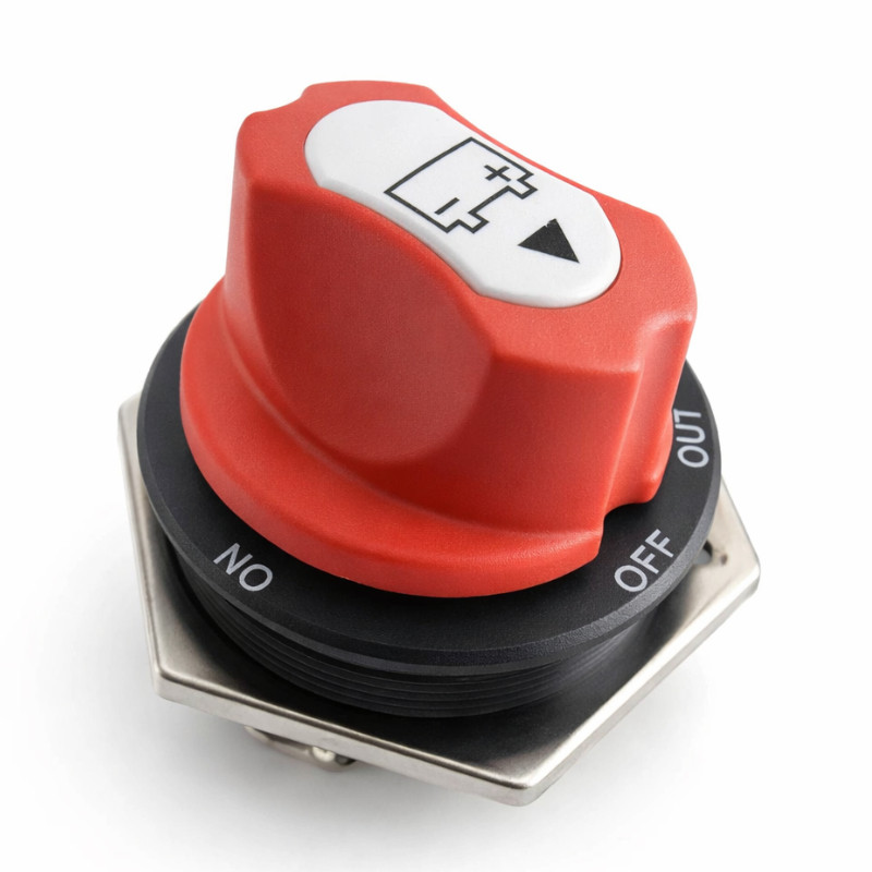 Wytrzymały rozłącznik główny do instalacji 12/32 V DC, przystosowany do pracy ciągłej z prądem do 300 A. Zapewnia szybkie i bezpieczne odcięcie zasilania w pojazdach, łodziach, kamperach oraz systemach off-grid. Przystosowany do niskonapięciowych instalacji w pojazdach, jednostkach pływających oraz systemach autonomicznych. Oszczędza miejsce i zapewnia trwałość w codziennym użytkowaniu, także w wymagających warunkach zewnętrznych. Może pełnić rolę głównego wyłącznika serwisowego lub elementu bezpieczeństwa w skrzynkach i szafach zasilających, instalacjach PV off-grid, kamperach oraz jednostkach pływających.