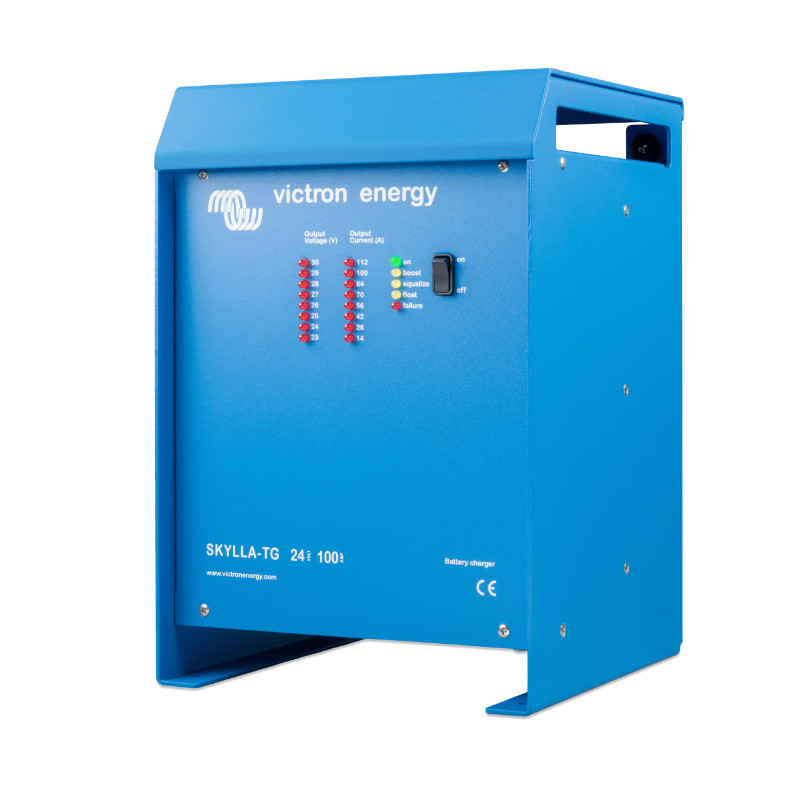 Skylla-TG 24/100 (1+1) to niezawodna, ciężka ładowarka przeznaczona do najbardziej wymagających zastosowań. Dzięki dwóm izolowanym wyjściom może jednocześnie ładować duży akumulator główny oraz mały akumulator startowy. Solidna konstrukcja i certyfikat GL sprawiają, że doskonale sprawdza się na łodziach, w instalacjach off-grid oraz w przemyśle.