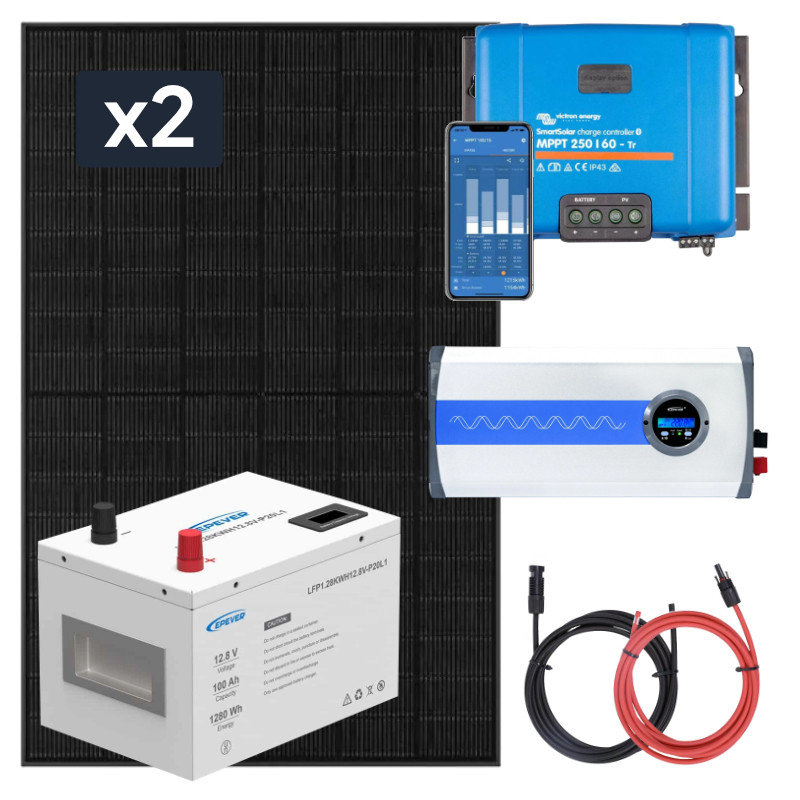 Panele monokrystaliczne oparte na technologii ogniw połówkowych generują większą moc wyjściową, a przetwornica z serii IP Plus zapewnia zarówno estetykę, jak i funkcjonalność. Regulator ładowania SmartSolar MPPT wykorzystuje trójstopniowy system ładowania, co optymalizuje cykle ładowania i wydłuża żywotność akumulatorów.